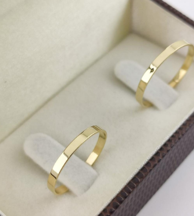 ✅Par de alianças ouro 18k ✅largura 2mm ✅Conforto reta ✅Peso médio de 1,5g a 2g o par